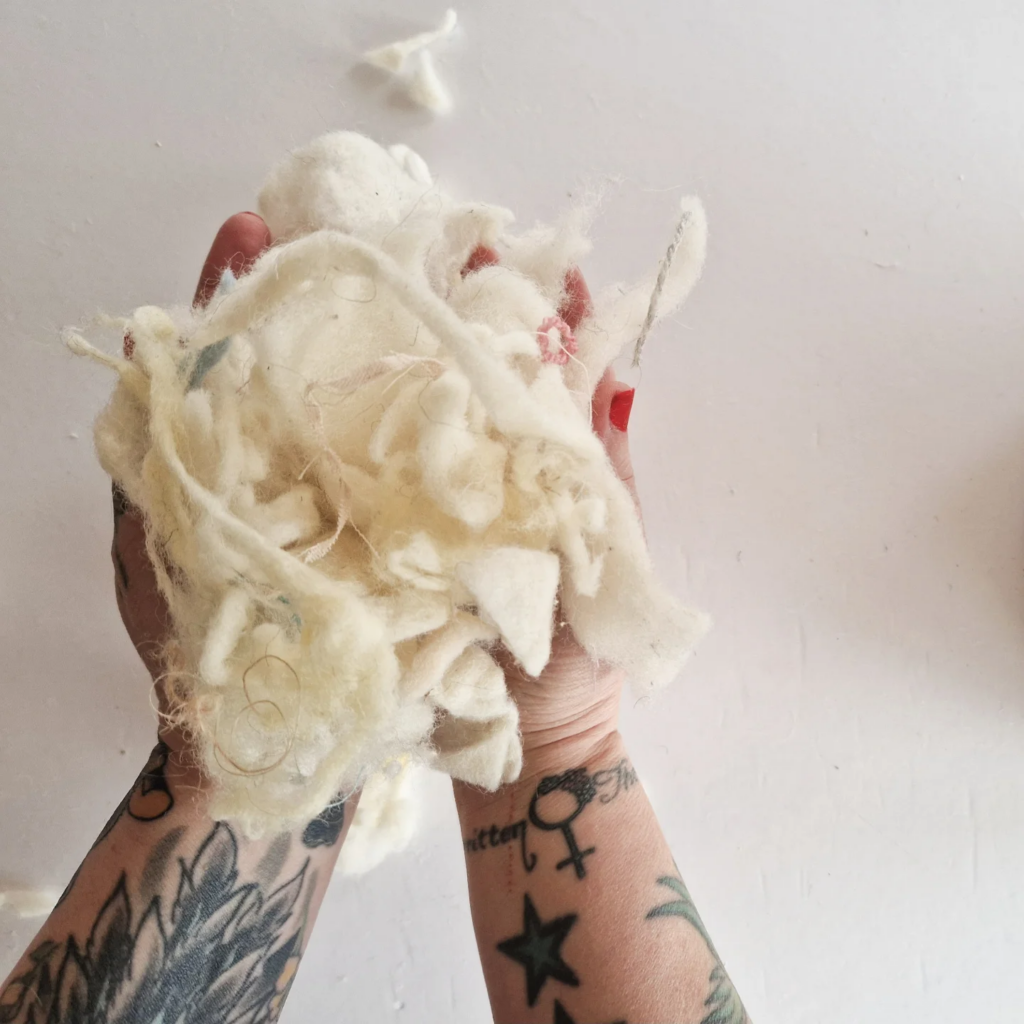 Jag har länge varit fascinerad av ullens känsla, hållbarhet och unika naturliga egenskaper. Samtidigt känner jag sorg och frustration över hur mycket svensk ull som slösas bort trots att den är en värdefull resurs. I mitt arbete vill jag jobba för ett mer respektfullt och varsamt sätt att använda ull, där varje fiber räknas och uppskattas. Även ull som inte är glansig eller mjuk kan ha viktiga användningsområden.