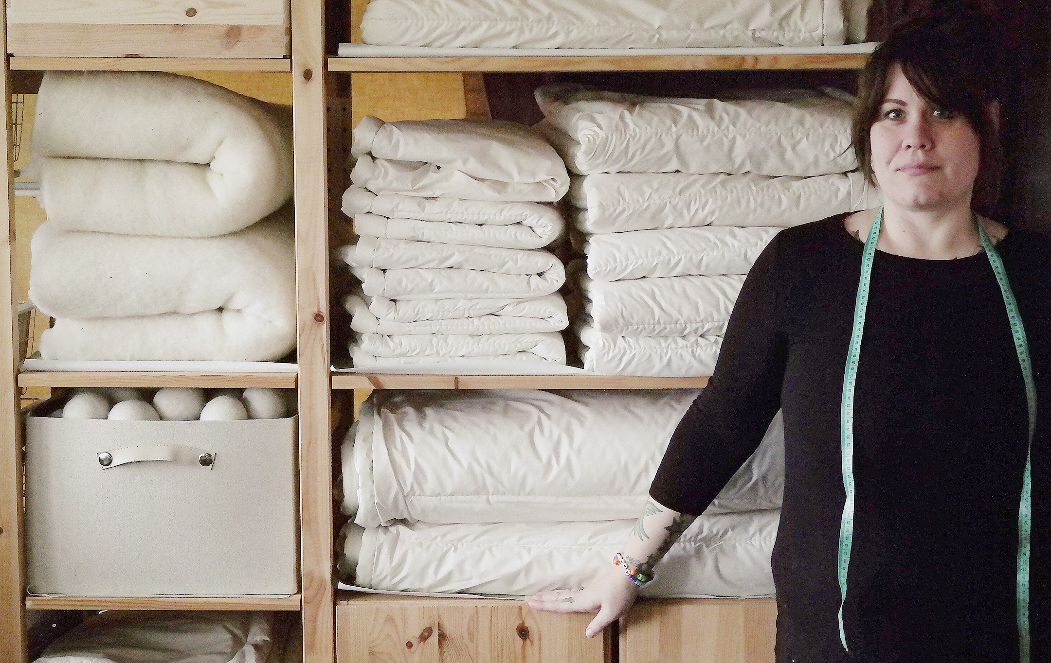 Jag är textilhantverkare och älskar ull, ett material som fascinerar mig varje dag. För 12 år sedan fick jag mina första lamm och började med traditionellt hantverk. Jag är född och uppvuxen på Gotland, där jag också driver min verksamhet. Under namnet Rosa Räven gör jag ulltäcken, som är grunden i mitt arbete. Spill från täckena ser jag inte som skräå utan som början på något nytt. Av resterna skapar jag lekfulla och unika saker där materialet är i fokus.