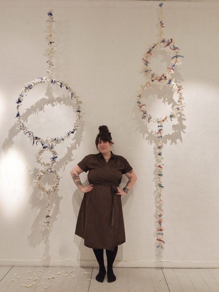 Mitt intresse för textil och hållbarhet genomsyrar allt jag gör. Jag har studerat textil på Gotlands folkhögskola och vidareutbildat mig till hållbarhetsutvecklare och cirkulär designer inom textil och mode på Nordiska Textilakademin i Borås. Min målsättning är att förena hantverk, konst, inredning och cirkularitet samt öka kunskapen om ull. Jag vill också stödja utvecklingen av svensk ull tillsammans med andra som brinner för detta fantastiska material!
